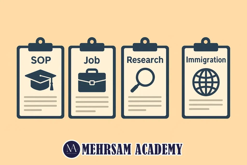 | انگیزهنامه / SOP | بیان دلایل شخصی و تحلیلی برای انتخاب رشته، دانشگاه یا شغل | شخصیسازیشده، با داستانسرایی و استدلال منطقی |